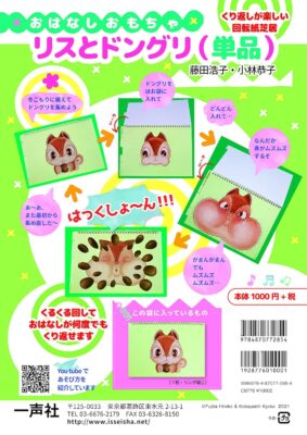 「見て!拾ったよ」と、瞳を輝かせて、どんぐりを大事そうに見せてくれる子どもたち。今週は、そんな気持ちに寄りそいたいと、スケッチブックシアター「りすとどんぐり」を実施しました。「どこかにどんぐり、落ちてないかな?」とリスが問いかけると、多くの子が「どんぐりあるよ」と、リスに手を差しだしています。「どんぐりどうやって持って帰ろう?」という問いには、「しっぽに巻いて持って帰ったら?」「一緒に運んであげるよ」等、優しい答えが返ってきてとても発想豊です。