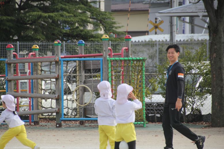 年中組では、鉄棒・平均台渡り・タイヤ跳び・登り棒に挑戦し、11月からはボール遊びや縄跳びを中心に指導しました。初めての縄跳びにも一生懸命取り組み、ルールを守る大切さを学びながら、「できなかったことができるようになる喜び」を感じ、元気いっぱい頑張ってくれました。