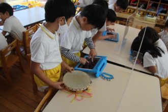 年少さんは今月アートポンを行ないました。自分達の描いた絵が、テレビ画面 …