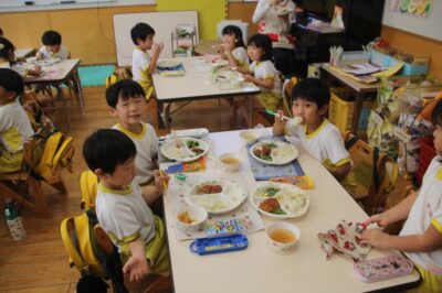 さつま芋ごはん 2025年10月30日 今日の給食は「さつま芋ごはん」です。 10月21日に年長、24日に年中の園児が勝愛ふれあい農園で収穫してきた「さつま芋」を厨房の職員が調理してくれました。 子どもたちは6月に苗を植え、自ら掘り出した「さつま芋」だけに、大喜びでいつも以上に食が進んでいたようです。 今日のさつま芋ごはん、28日と11月7日のおみそ汁の具、そして11月6日にさつま芋サラダとして、子どもたちの食卓に上ります。 夏場の暑い中、お世話していただいた運転士さんに感謝です。 NEXT