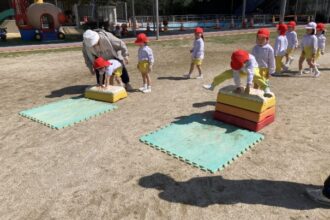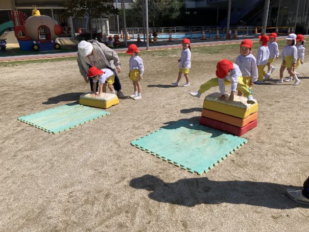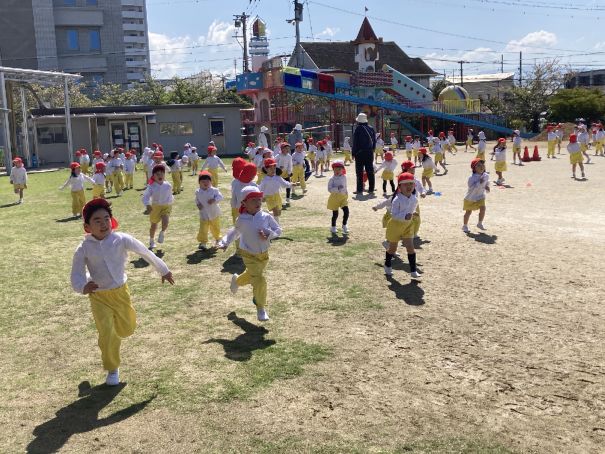 外遊び 2026年4月24日 園内の木々が日増しに新緑の輝きを増しています。 周期的に雨が降る日が続いていますが、運動場の土は、すぐに乾くので外遊びも楽しめています。 年中さん、年長さんは、マラソン、サーキットを、年少さんは運動場で、一等賞体操をした後、こいのぼり運動会の練習をしています。 NEXT
